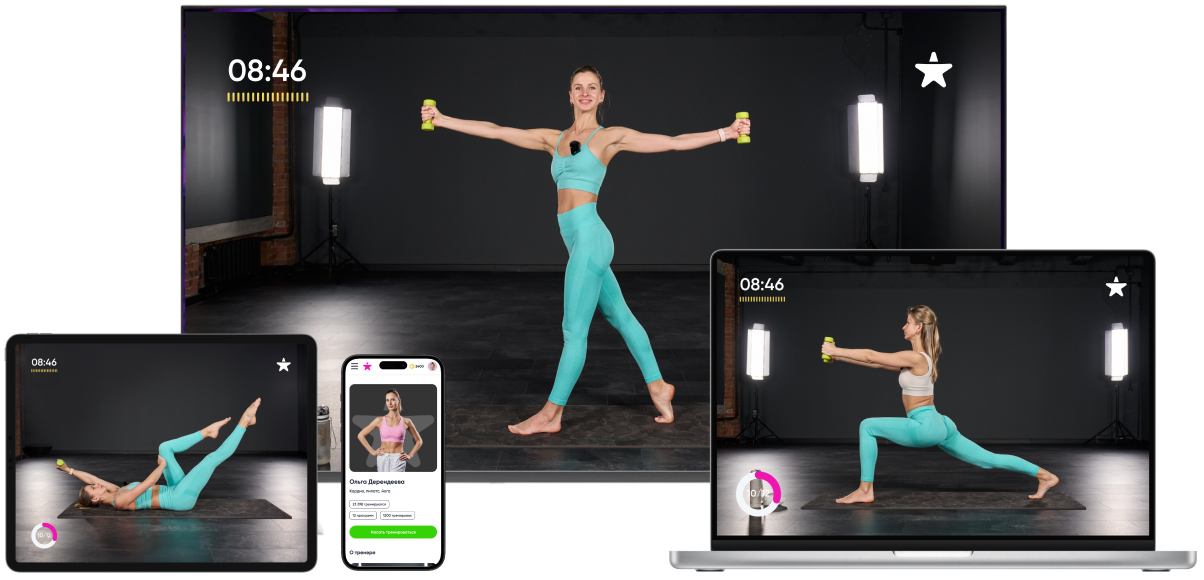 Тренируйтесь где угодно и когда угодно! Наши онлайн фитнес-программы доступны на смартфонах, планшетах, телевизорах и компьютерах. Оформляйте подписку и начинайте тренировки прямо сейчас!